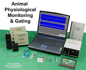 Animal physiologic monitoring and image gating control is provided through a SA Instruments Inc. (SAII) Model 1025 MR-compatible monitoring and gating system. The system can simultaneously monitor and record ECG, respiration, temperature, and blood pressure. Animals are warmed by air with a SAII rodent heater system that is controlled by the Model 1025 based on the animal's temperature. Isoflurane anesthesia is available to users. A 4-channel fiber optic thermometry system is used to monitor animal and bore temperatures.